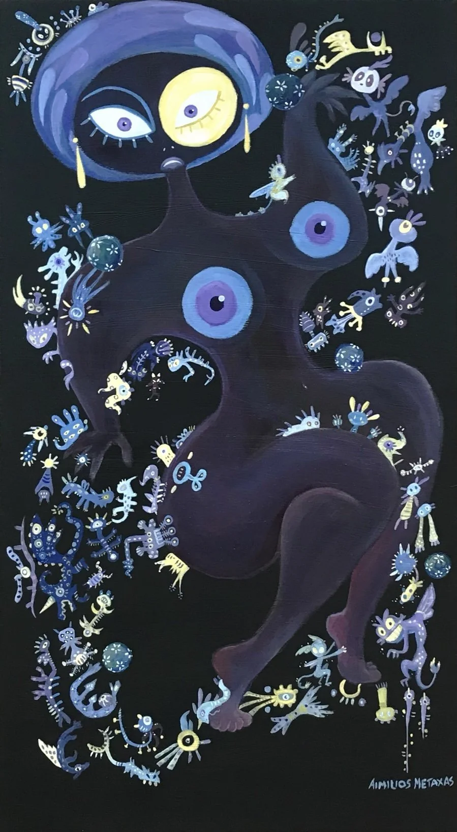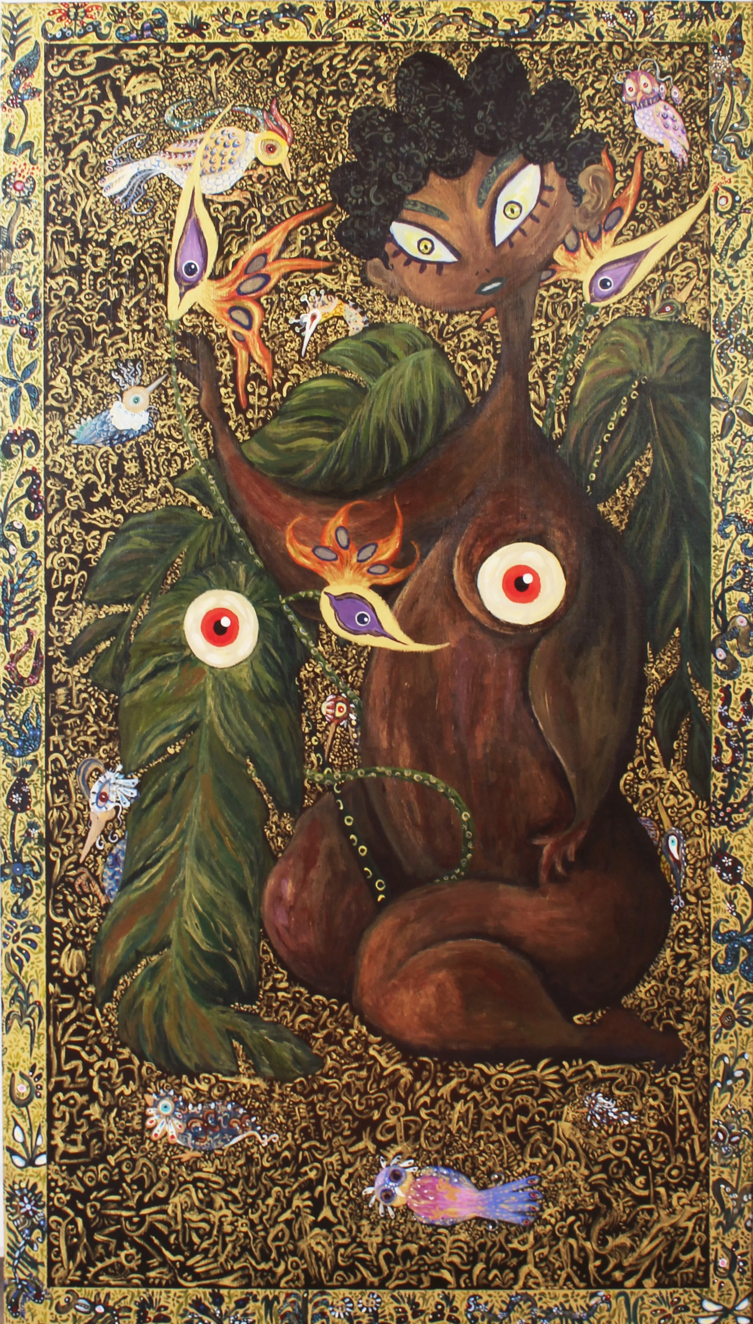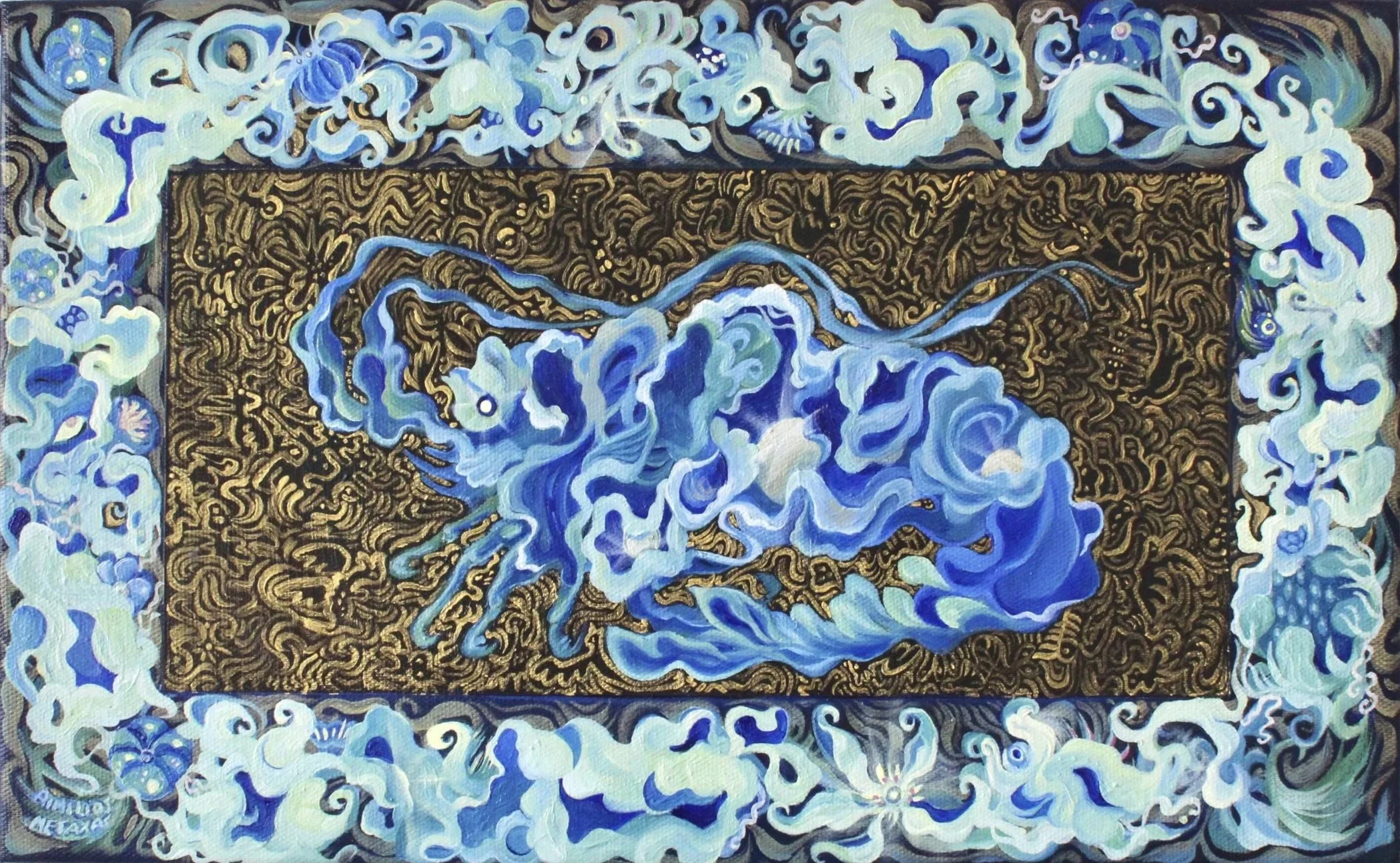 2024| 45x35cm | Ink, gouache, citrine and pearls on canvas